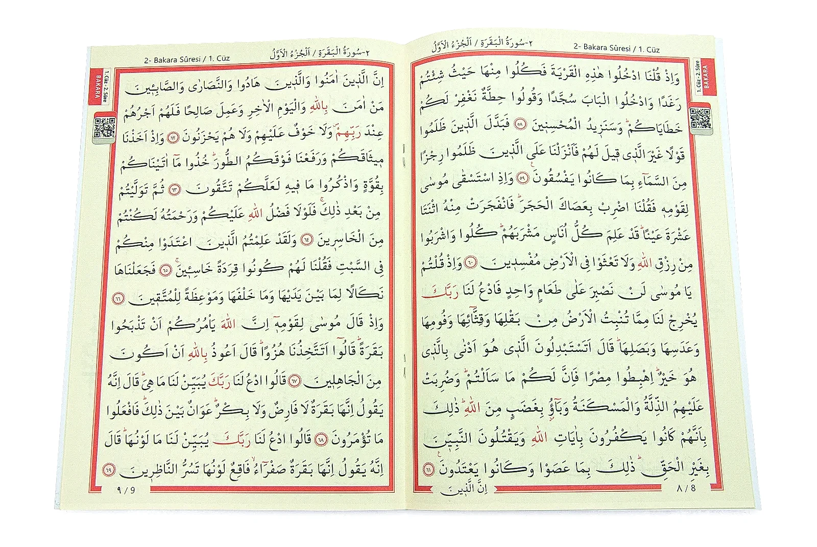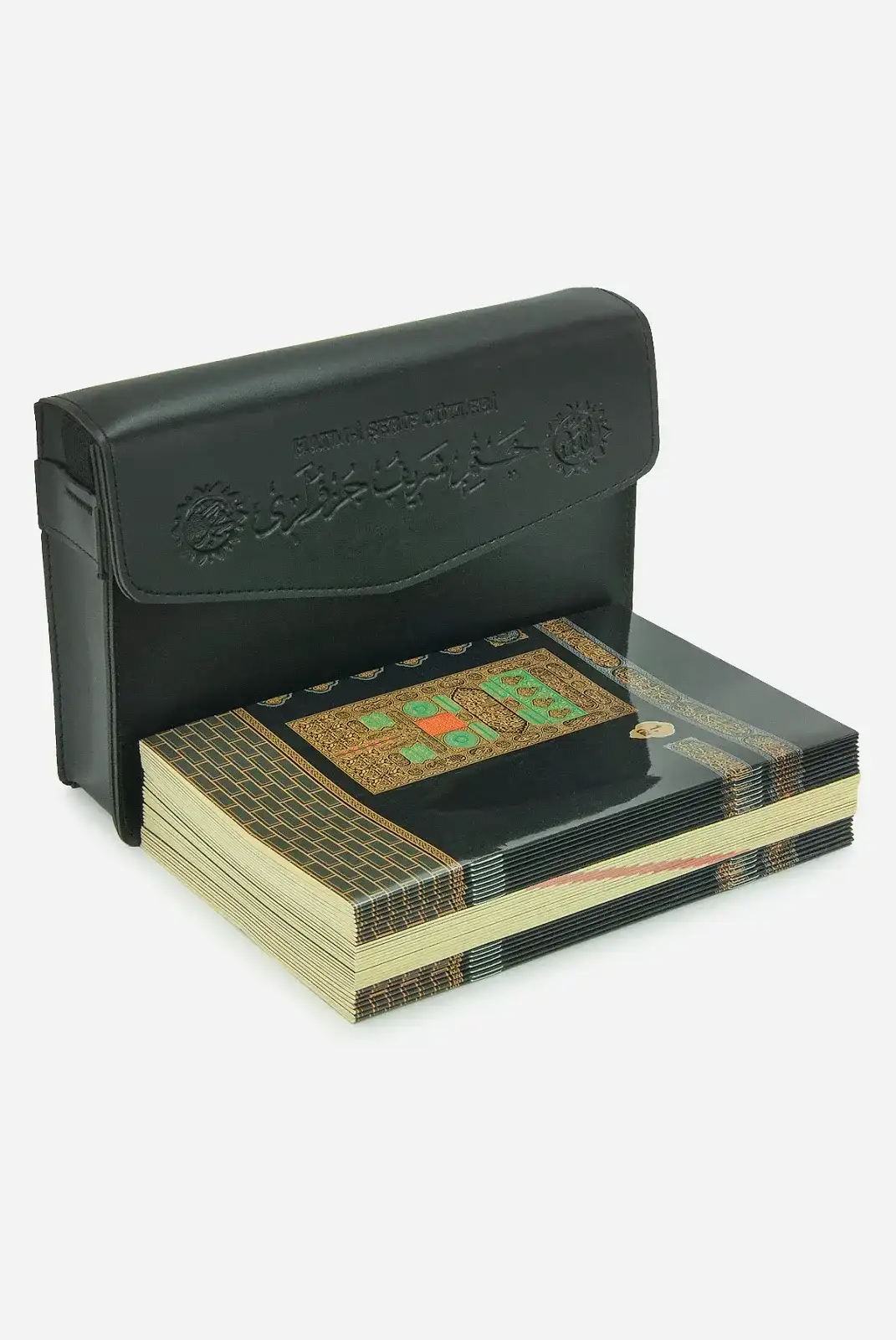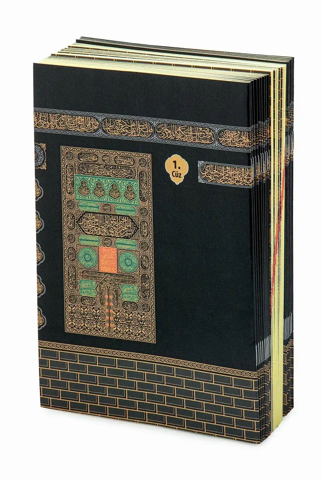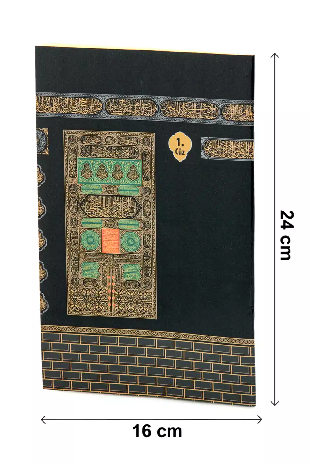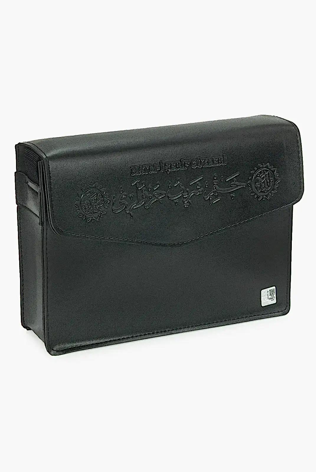 Bu 30 Cüz Suni Deri Çantalı Orta Boy Kuran-ı Kerim, siyah renkte olup, şık ve dayanıklı bir tasarıma sahiptir. Arapça bilgisayar hattıyla yazılmış olup, her bir sayfa dikkatlice yerleştirilmiş ve okunabilirliği artırılmıştır. Mıknatıslı kapak sayesinde, Kuran'ınız güvenle kapanır ve taşınması son derece kolaydır. Ürünün üzerinde tutma kayışı da bulunur, bu da pratik kullanım sağlar. Bu Kuran, hem evde hem de seyahatte rahatça kullanılabilecek mükemmel bir seçenektir.